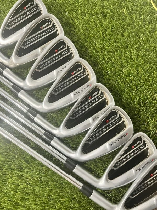 Benross Compressor Type R HTX Irons 4-GW//StiffShaft KBS stiff flexCondition RatingOverall -9Head -9Shaft -9Grip -9This is how we rate the condition of our golf equipment;10 (NEW) – Unused, perfect mint condition9 (EXCELLENT) – Used with very minor signs of light use8 (VERY GOOD) – Used with normal signs of light use7 (GOOD) – Shows signs of normal use with some minor scratches or marks on paintwork6 (FAIR) – Shows noticeable usage marks and scuffs that do not affect performance5 (WELL USED) – Show heavy signs of use, nothing to affect performanceThe images featured are of the actual product we are selling.If you have any questions about a product featured on our website or want to know more information please email [email protected] or call the shop 0191 217 0519