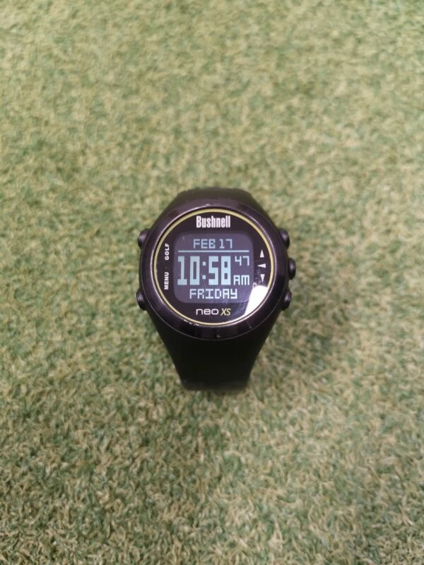 Bushnell Neo XS GPS Watch (Used)lightweight GPS watch that shows distances to the front, middle and back of greens and up to four hazard and lay-up distances per hole. It is preloaded with more than 33,000 courses in over 30 countries. An odometer shows the distance travelled during a round and it allows distances of shots to be measured. The display is designed to make it easier to read in all conditions.Headcover includedCondition Rating – 7 – Few little wear and tear marks from general usage.This is how we rate the condition of our golf equipment;10 (NEW) – Unused, perfect mint condition9 (EXCELLENT) – Used with very minor signs of light use8 (VERY GOOD) – Used with normal signs of light use7 (GOOD) – Shows signs of normal use with some minor scratches or marks on paintwork6 (FAIR) – Shows noticeable usage marks and scuffs that do not affect performance5 (WELL USED) – Show heavy signs of use, nothing to affect performanceThe images featured are of the actual product we are selling.If you have any questions about a product featured on our website or want to know more information please email [email protected] or call the shop 0191 217 0519